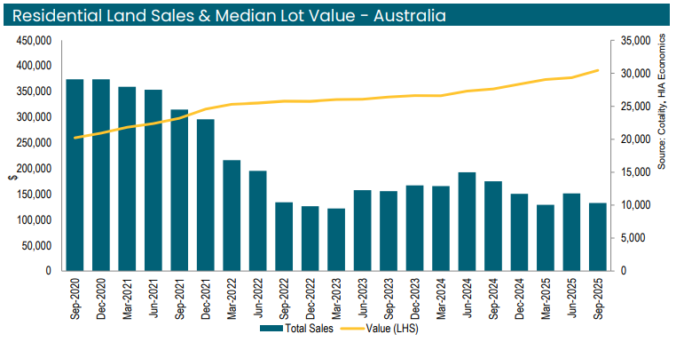 The data reveals a disturbing trend: prices are surging even as sales volumes drop. In any normal market, low demand should lead to lower prices. Instead, land supply has become the "binding constraint", there simply isn’t enough "shovel-ready" land available to meet demand, which keeps prices artificially high.